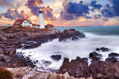 Stormy Sunset Lighthouse Cape Elizabeth,Maine New England