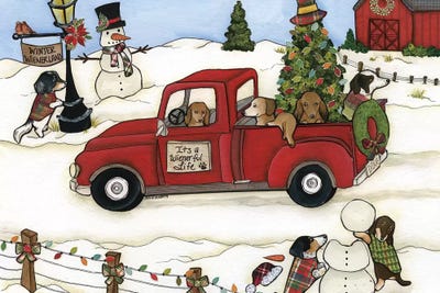 Red Truck With Dogs Christmas Woods