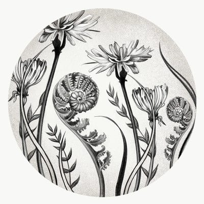 Fern with yellow flowers, plate from a seed merchants in Oisans French School