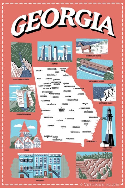 USA, Georgia Illustrated Travel Poster