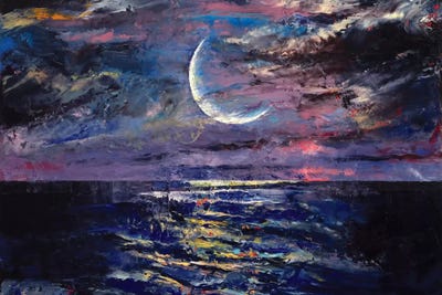 Tranquil Ocean At Night Against Starry Sky, Moon And Falling MeteoriteEvgeny Kuklev