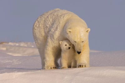 Polar Bear Sow With Spring Cub Newly Emerged From Their Den, Area 1002, Arctic National Wildlife Refuge, Alaska