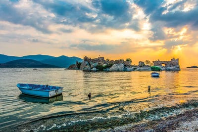 Italy, Venice. Moored Gondolas And Church Of San Giorgio Maggiore At Sunrise.Jaynes Gallery