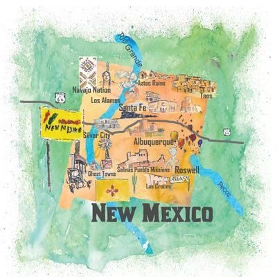 USA, New Mexico Illustrated Travel Poster