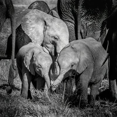 Elephants In Kruger, Black And White