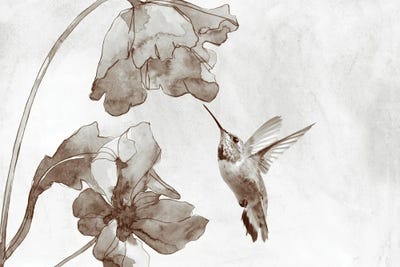 Hummingbird And Poppy Flowers Sepia Toned