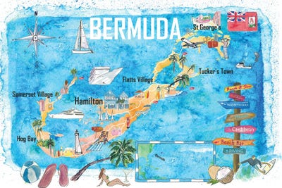 Bermuda Island Travel Poster Favorite Tourist Map HighlightsMarkus & Martina Bleichner