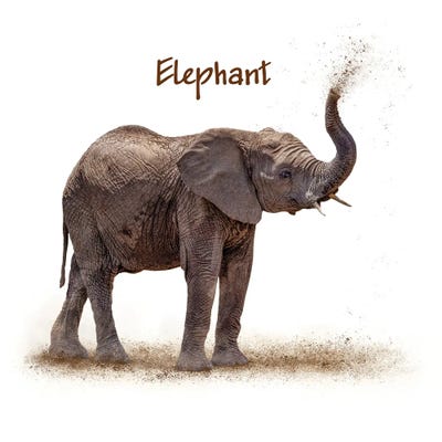 Baby Elephant Calf Blowing Dirt On White