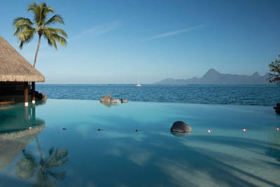 Bungalows And Palm Trees On The Coast, Bora Bora, Society Islands, French PolynesiaPanoramic Images