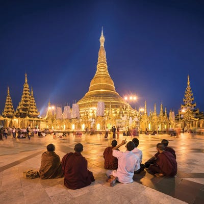 Group Of Buddhist Monks In Front Of The Golden Shwedagon Pagoda In Yangon, MyanmarJan Becke