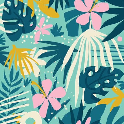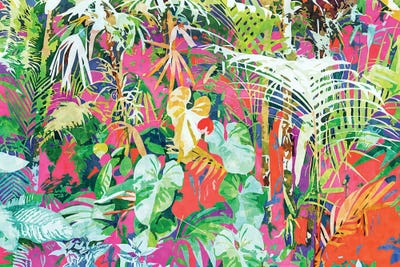 Palm Garden, Tropical Nature Jungle Botanical Painting, Bohemian Intricate Pastel Forest83 Oranges