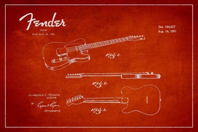 Fender Guitar Red Patent Blueprint