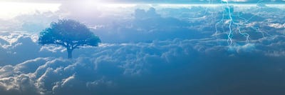 Surrealism Lightning And Dawn Green Tree
