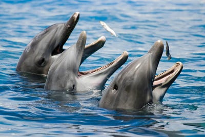 Atlantic Bottlenose Dolphins, Tursiops Truncatus, Feeding On Small FishDavid Fleetham