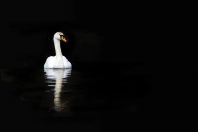 White Swan Reflected In Calm Water