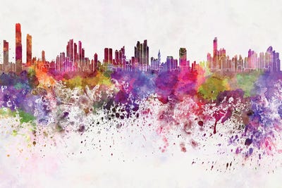 Panama City Skyline In Watercolor Background