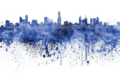 Melbourne Skyline In Watercolor Blue