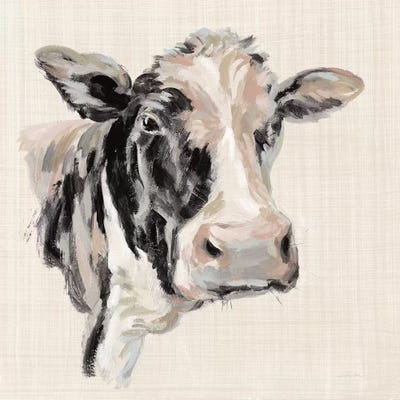 Expressionistic Cow I Neutral Linen