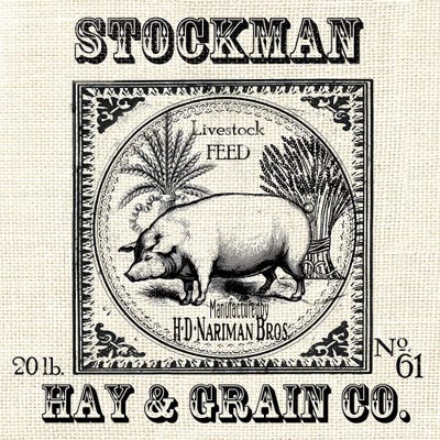 Farmhouse Grain Sack Label Pig
