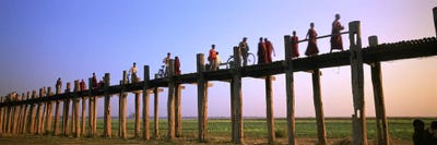 Myanmar, Mandalay, U Bein Bridge, People crossing over the bridgePanoramic Images
