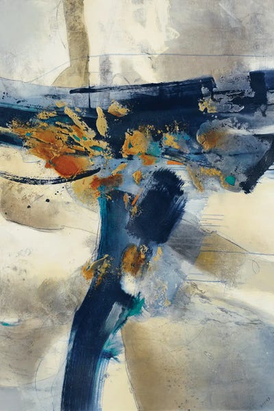 Navy Yellow Greige Abstract