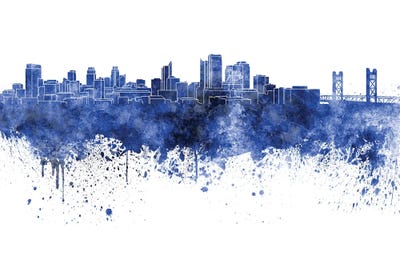 City skyline and a bridge at dusk, Bay Bridge, San Francisco, California, USA 2010Panoramic Images