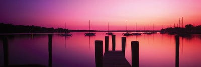 Canada, Manitoba, Matlock. Pier On Lake Winnipeg At Dusk With Moon.Jaynes Gallery