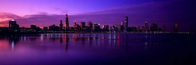 High Angle View Of Buildings Lit Up At Dusk, Chicago, Illinois, USAPanoramic Images