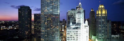Skyscraper lit up at night in a city, Chicago, Illinois, USAPanoramic Images