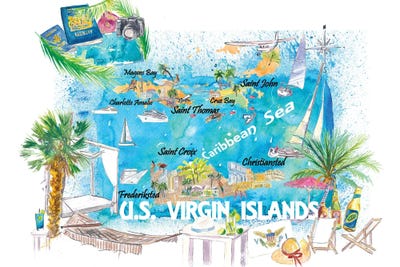 Us Virgin Islands Illustrated Travel Map With Roads And HighlightsMarkus & Martina Bleichner
