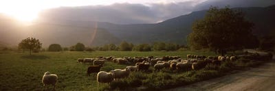 Flock of sheep grazing in a field, Feneos, Corinthia, Peloponnese, GreecePanoramic Images