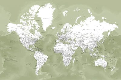 Habiki Detailed World Map In Soft Muted Watercolor