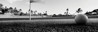 Close Up Of Golf Ball And Hole, Hawaii, USA (Black And White)Panoramic Images