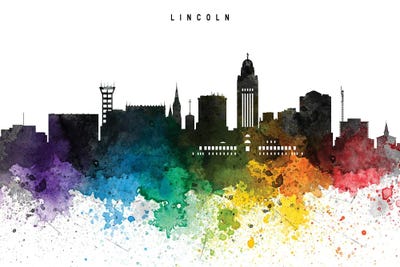Lincoln Colorful Watercolor Skyline
