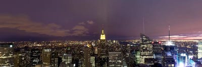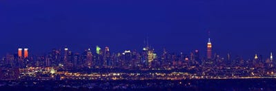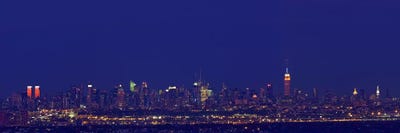Buildings in a city lit up at night, New York City, New York State, USAPanoramic Images