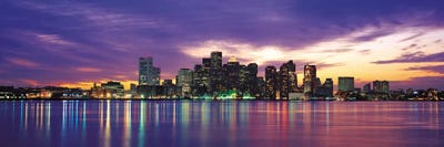 USA, Massachusetts, Boston, View of an urban skyline by the shore at nightPanoramic Images