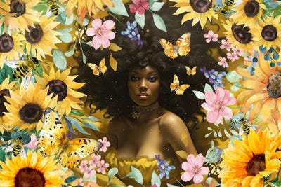 Golden Sunflowers Inside, Botanical Nature Floral Plants Painting83 Oranges