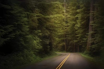 USA, Washington State, Olympic National Park. Western hemlock trees line road.Jaynes Gallery