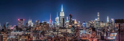 Panoramic View Of The Midtown Manhattan Skyline With Empire State Building At Night