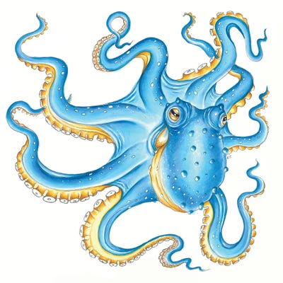 Blue Yellow Octopus Tentacles Dance Ink