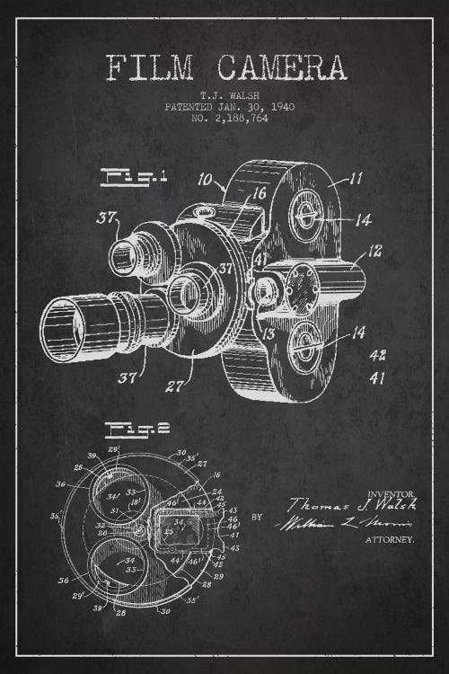Camera Charcoal Patent Blueprint