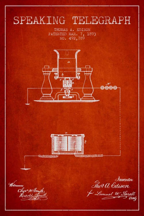 Telephone Transmitter Red Patent Blueprint
