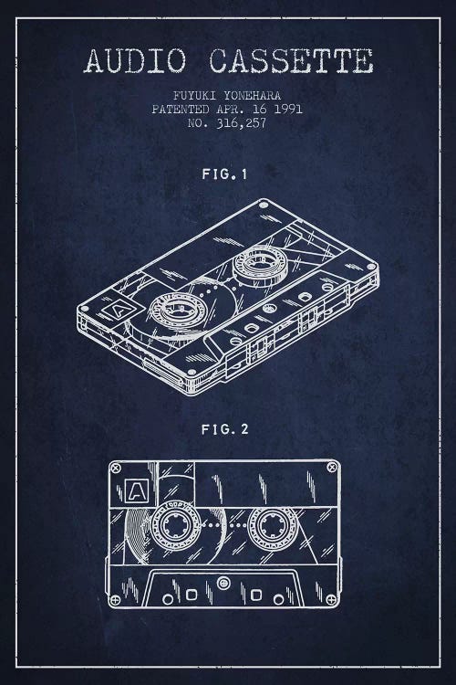 Fuyuki Yonehara Audio Cassette Patent Sketch (Navy Blue)