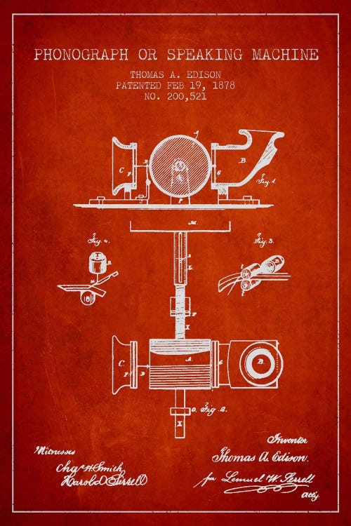 Record Player Red Patent Blueprint
