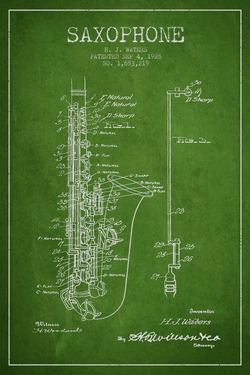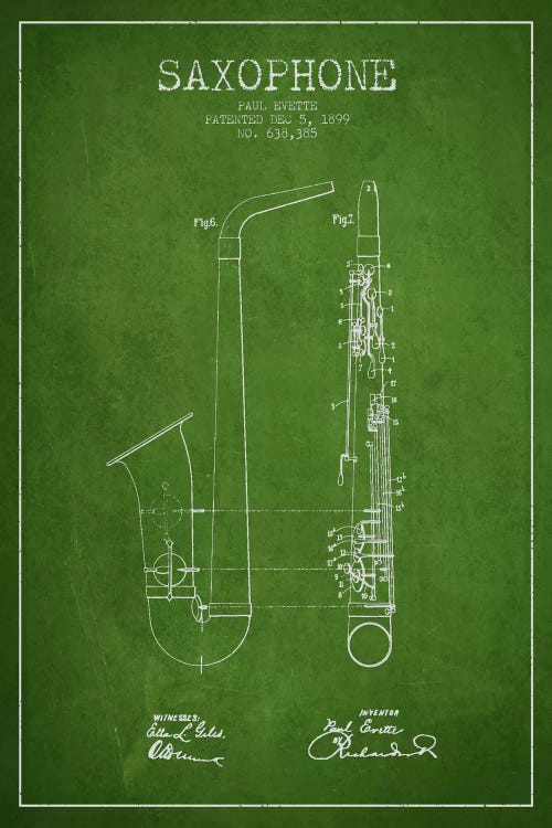 Saxophone Green Patent Blueprint