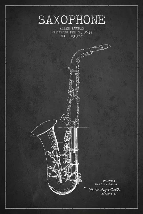 Saxophone Charcoal Patent Blueprint