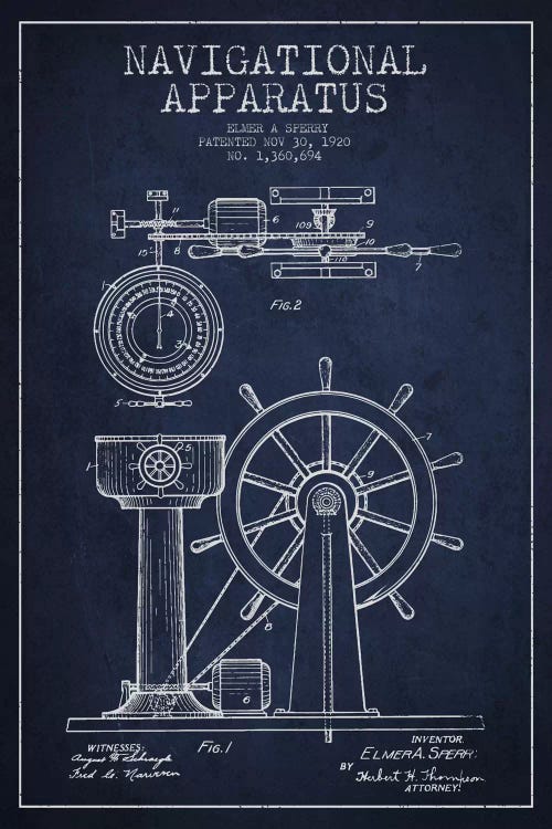 Navigational Apparatus Navy Blue Patent Blueprint