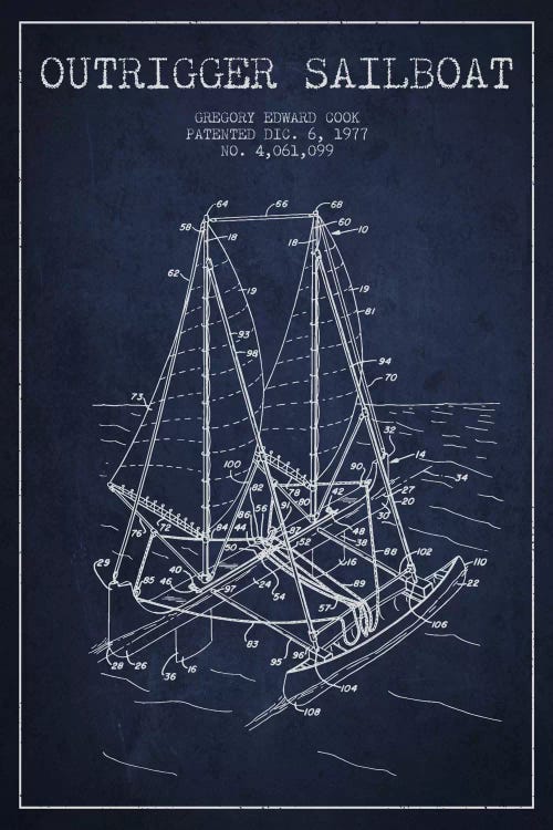 Outrigger Sailboat Navy Blue Patent Blueprint