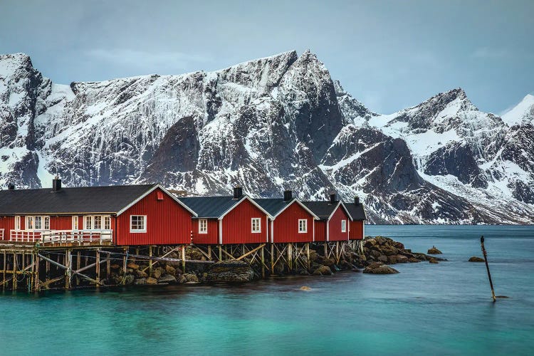 Norway Loften Islands Red Cabin Beautiful Mountain I