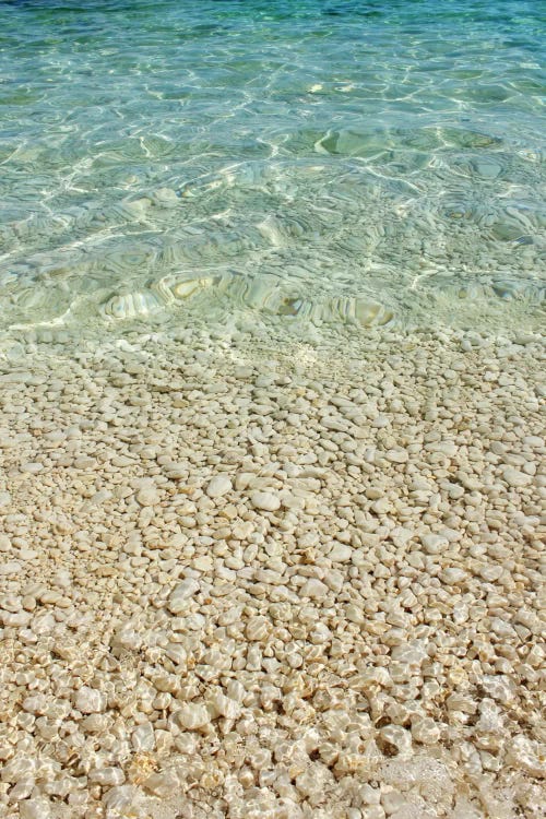 Aqua Blue Ocean And Golden Pebbles